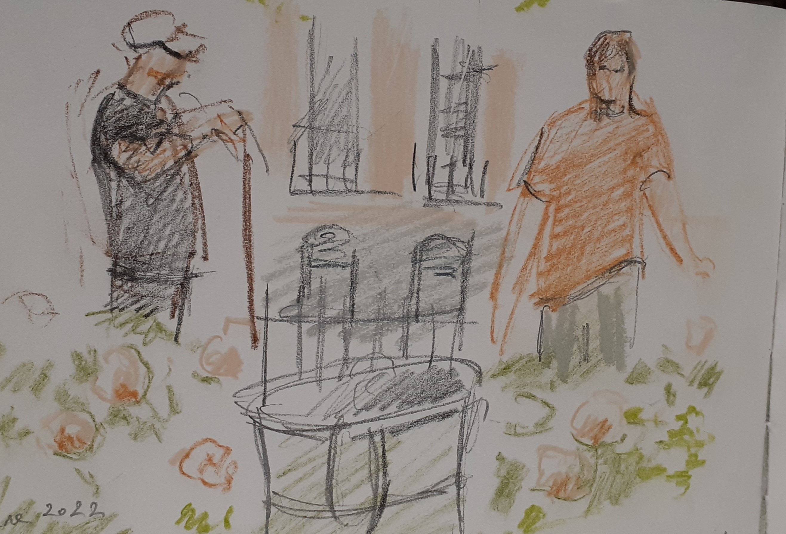 MARIANNE FOX OCKINGA is the Artist in Residence for Barnsbury Square Gardens and you can find information about her extensive work, exhibitions and special commissions at http://www.mariannefoxockinga.co.uk. Below are some sketches she did of our volunteer gardeners in action when she was here whilst she was doing some watercolours!